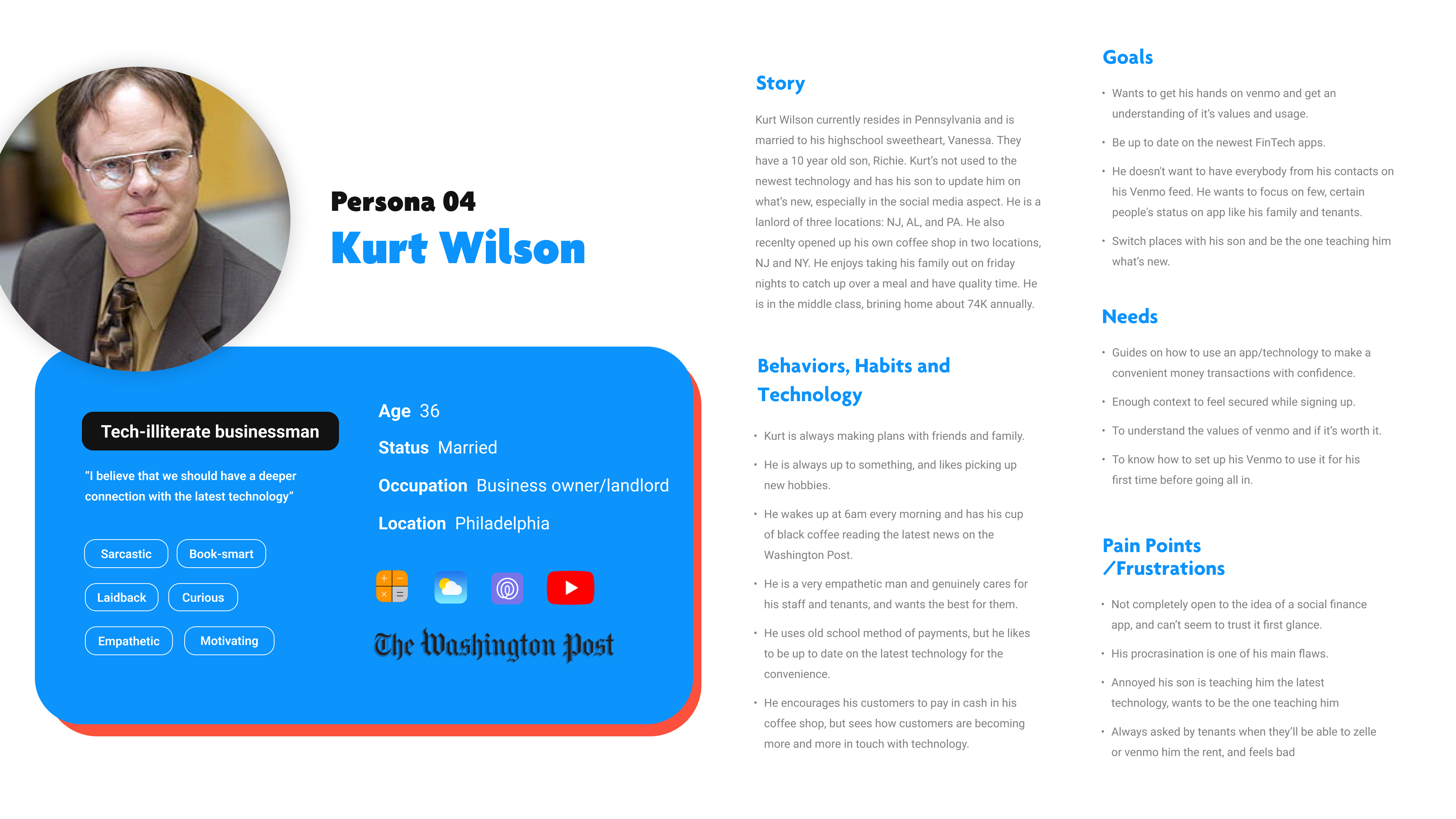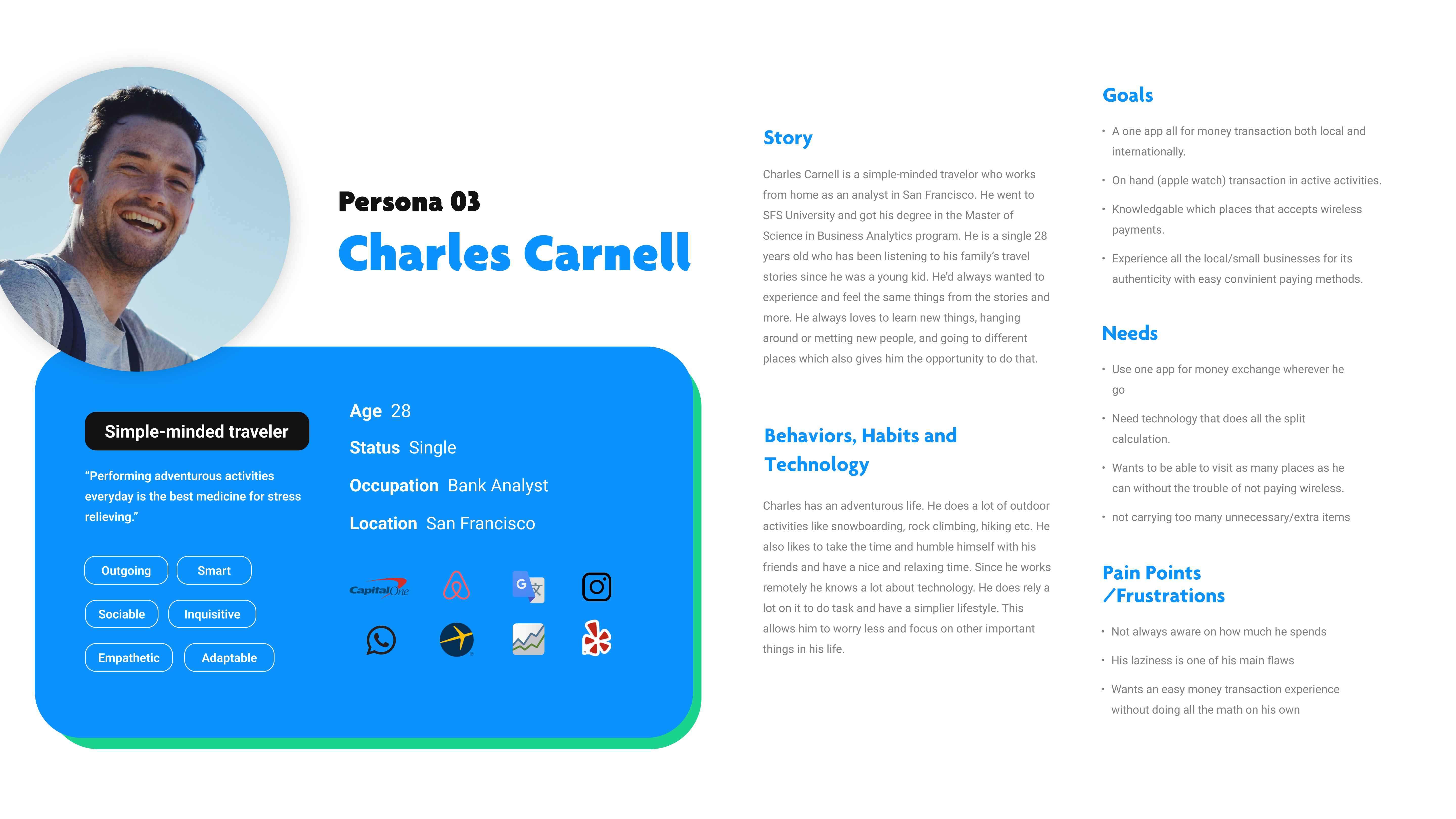 When developing the personas we focused on keeping a wide variety of users in our mind as money management affects all age and income groups.