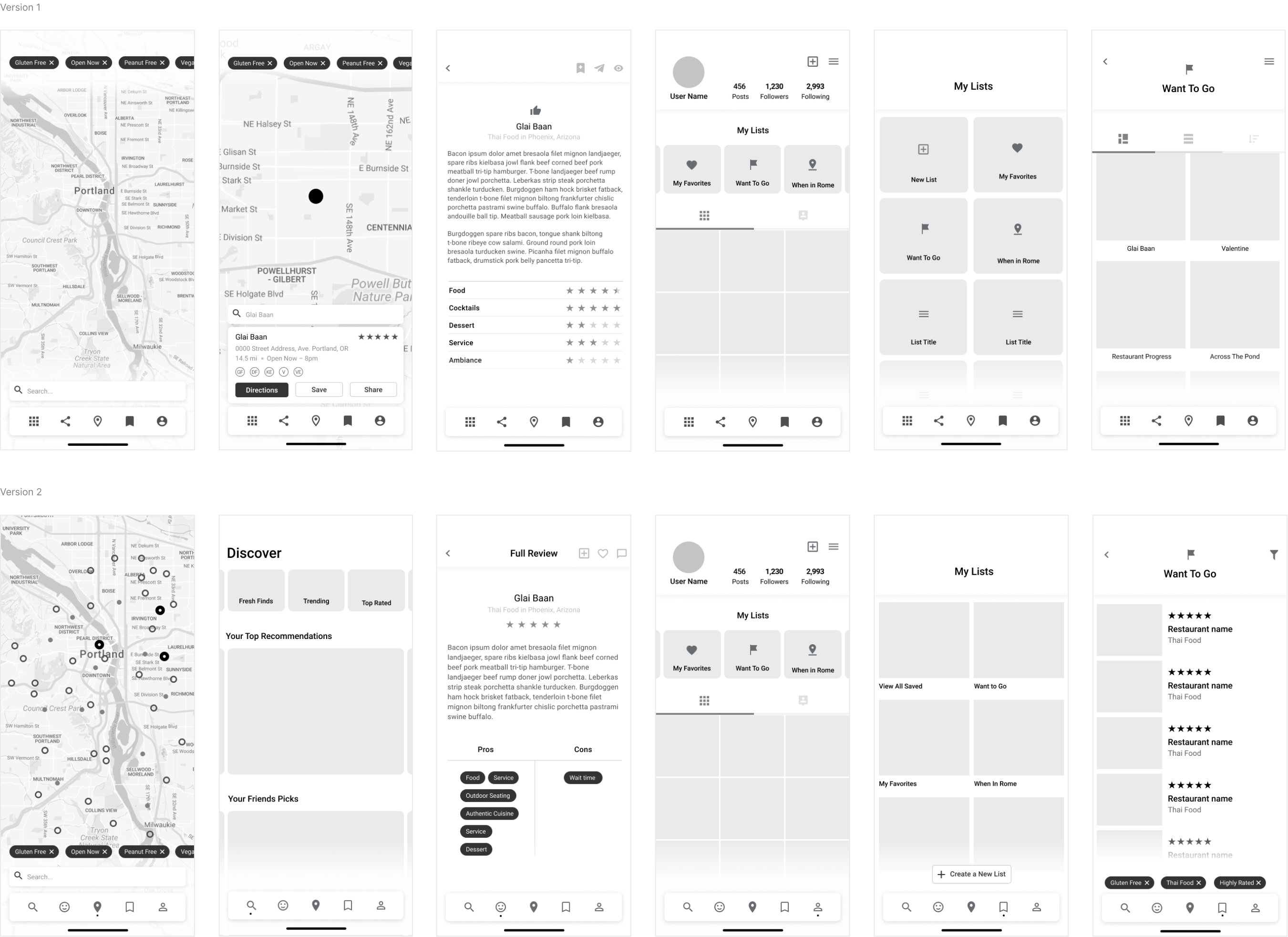 To kick-off the design process, quick sketches helped me get ideas on paper to establish which elements were necessary for each screen. A low fidelity prototype was then created for initial user testing.